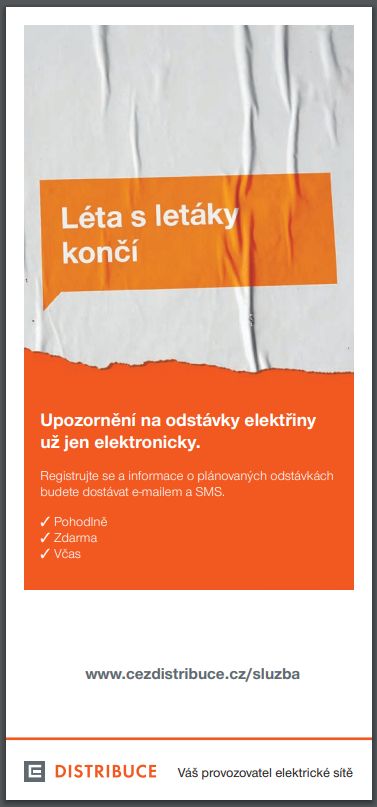 Informace o odstávkách elektřiny je možno po zaregistrování dostávat elektronicky